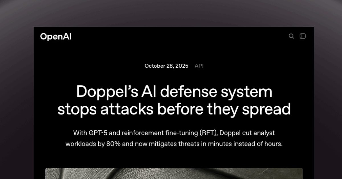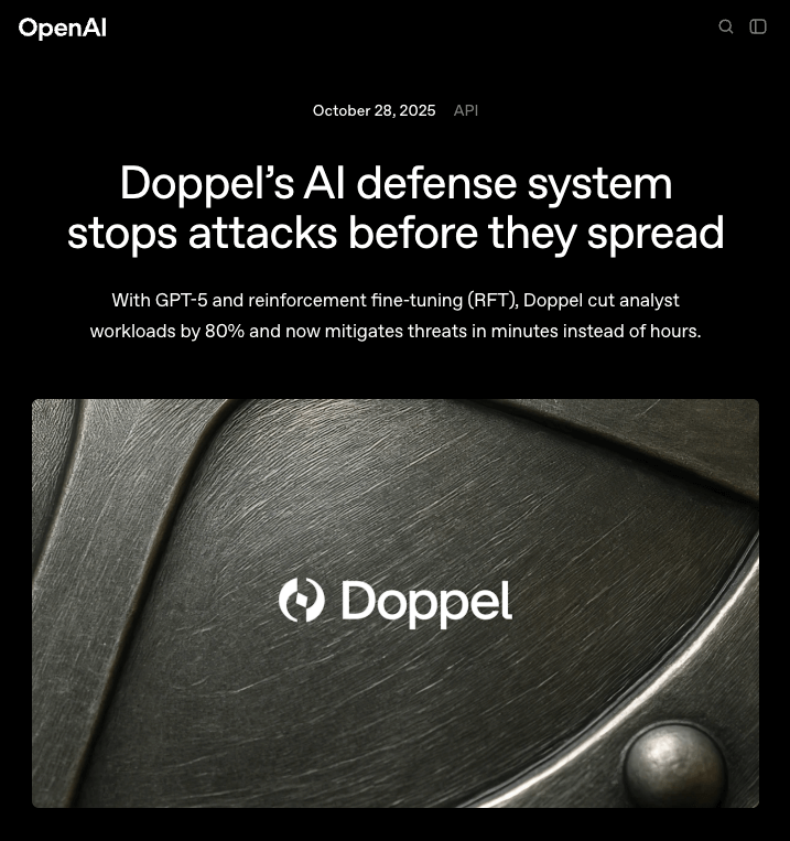 Most AI deployments in cybersecurity are exciting but fail to automate core workflows in production. They are simply too inaccurate and unpredictable. The OpenAI × Doppel case study proved that with the right data, careful engineering, and a team of expert supervisors, it is possible to automate detection and response in this domain (and likely in many others). And more importantly, this can be achieved while reducing errors and increasing transparency.